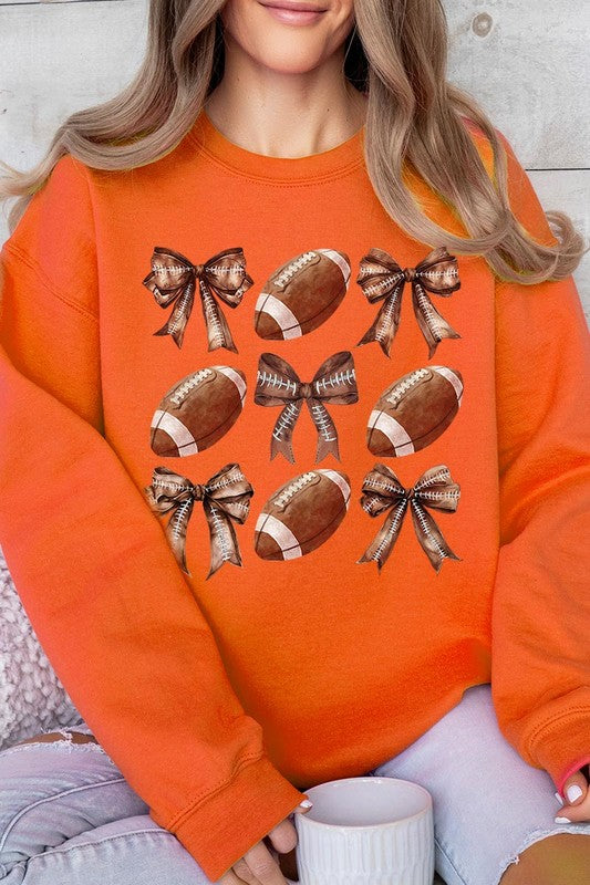 Coquette Football Bow Graphic Fleece Sweatshirts.