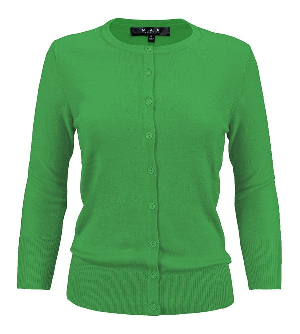 - 22"-23" Length, 3/4 Sleeves, Button Down, Basic, Daily, Casual, Crewneck Knit Cardigan Sweater